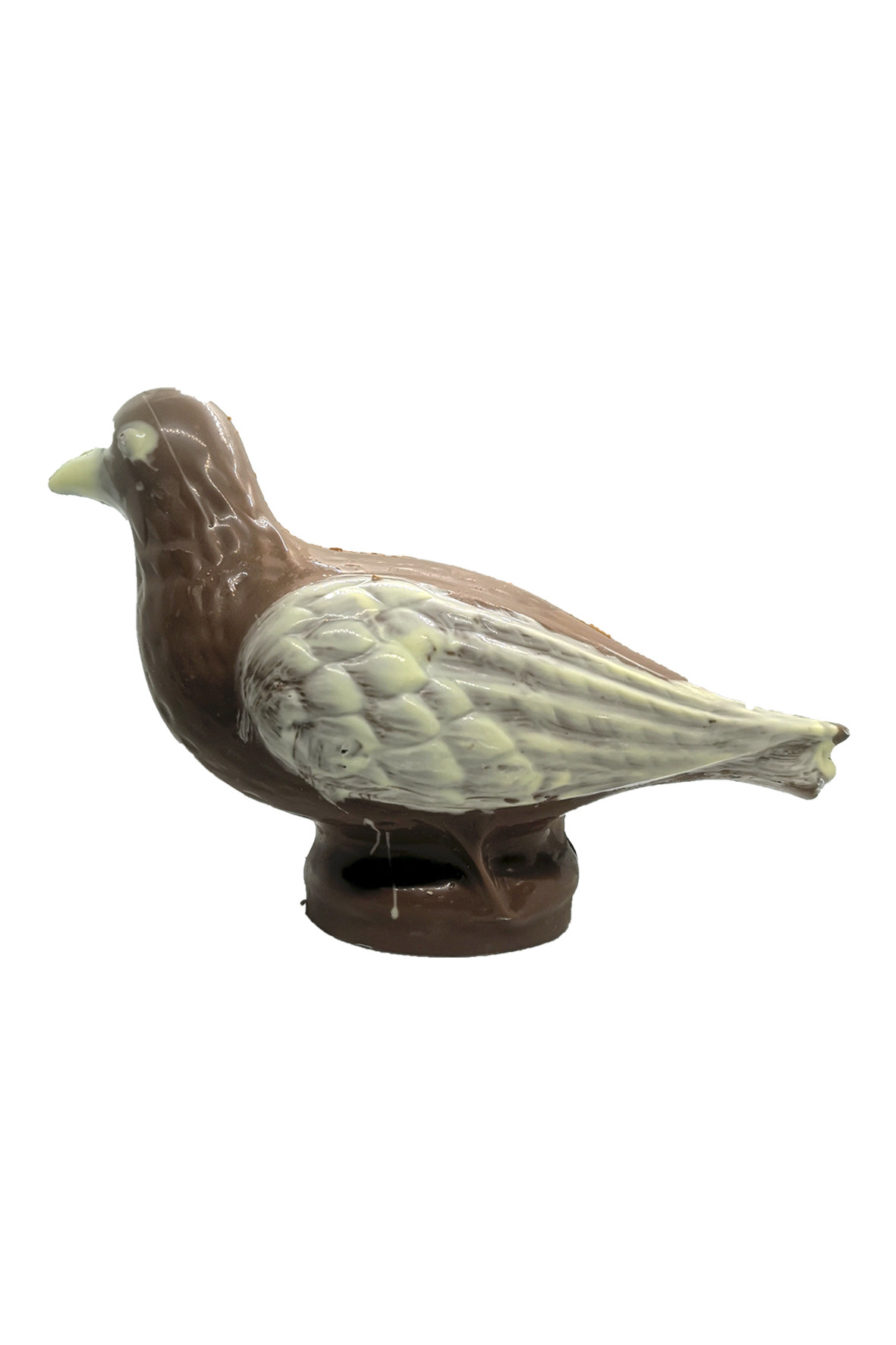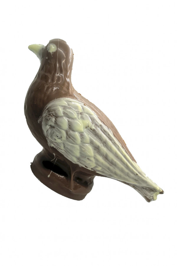 Colomba della pace di cioccolato al latte o fondente decorati e confezionati artigianalmente in carta trasparente con cioccolato ad alta percentuale di cacao.